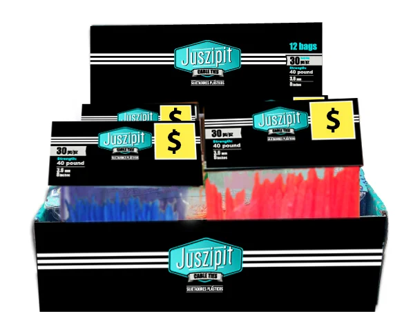 Strengths: 18lbs, 40lbs and 50lbs - Lengths: 4inch, 6inch, 8inch and 11inch. Available in all pantone colors for custom programs.